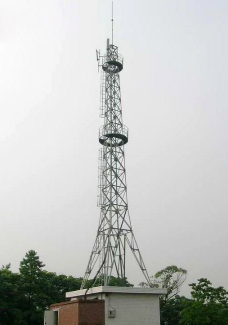 微波塔又稱(chēng)為微波鐵塔、微波通信鐵塔,多建于地面、樓頂、山頂。微波塔承風(fēng)能力強(qiáng),塔架多采用角鋼材料輔以鋼板材料,也可全部采用鋼管材料組成,塔架各構(gòu)件之間采用 螺栓連接,全部塔架構(gòu)件在加工完畢后經(jīng)過(guò)熱鍍鋅防腐處理。角鋼鐵塔由塔靴、塔身、避雷塔、避雷針、平臺(tái)、爬梯、天線支架、饋線架及避雷引下線等部件組成。